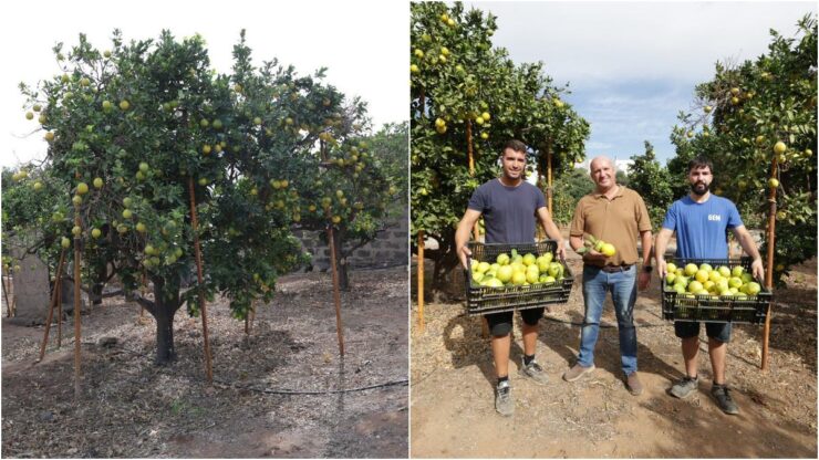 Nella raccolta di arance a Telde di quest’anno, gli alberi sono carichi come non si vedeva da tempo. «Gli aranci sono carichi. Calcoliamo che la produzione sarà intorno ai 15.000 chili di arance, e il rammarico è che lui non ha potuto vederlo», sottolinea Pepe Medina. Per sostenere il peso dei frutti hanno persino puntellato alcuni rami, segno di una campagna abbondante che rende questa vendemmia agrumicola un omaggio al fondatore.
