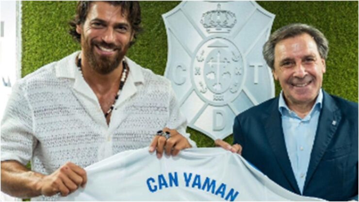 Il fenomeno Can Yaman continua a lasciare il segno a Tenerife. L’attore turco, sull’Isola per girare la sua prima serie in spagnolo, ha ricevuto un omaggio dal CD Tenerife all’Heliodoro Rodríguez López prima della sfida contro il Bilbao Athletic: maglia personalizzata con il numero 10, sciarpa e il volume commemorativo Centenario de Una Pasión.