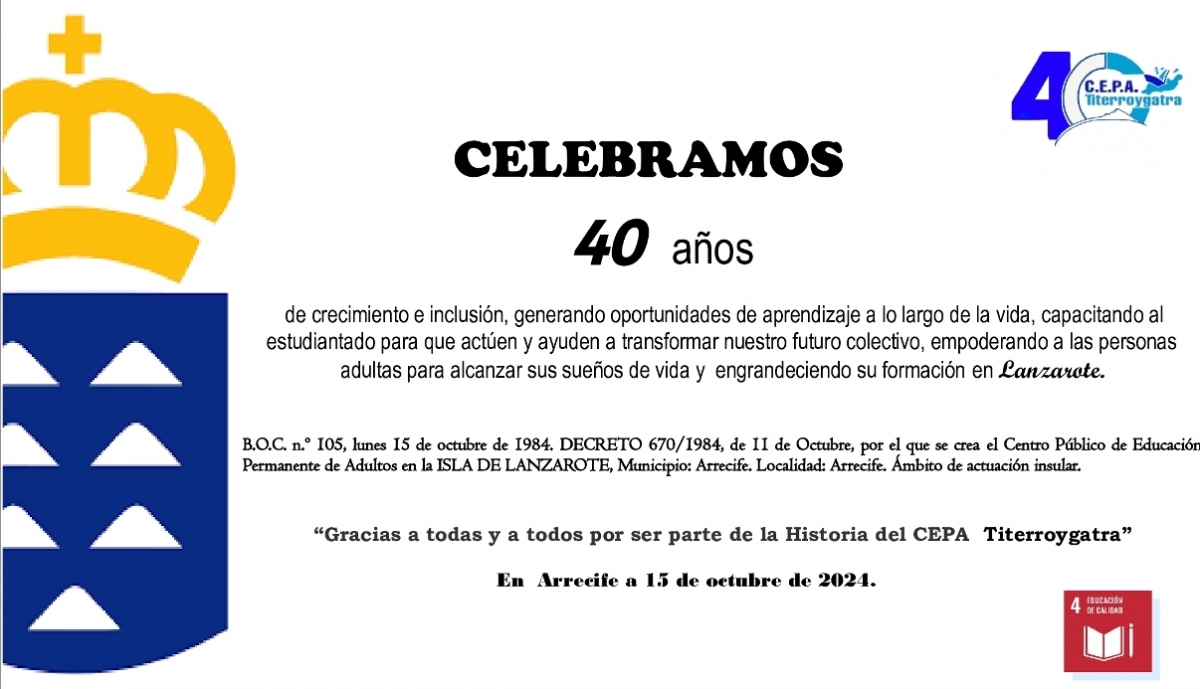 Grazie a un lavoro collettivo tra comunità educative, istituzioni e enti locali, il CEPA continua a crescere e a rispondere alle sfide educative dell’isola, arricchendo la cultura e il patrimonio sociale di Lanzarote. La storia del CEPA Titerroygatra non è solo un racconto di successi, ma un continuo impegno per garantire che l’educazione rimanga accessibile a tutti, chiunque sia e qualunque sia il periodo della vita in cui decide di tornare a studiare.