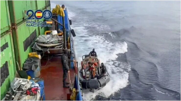 La Polizia Nazionale ha intercettato in alto mare un mercantile diretto a Vigo e ha sequestrato 4 tonnellate di cocaina a circa 1.100 chilometri dalle Canarie. L’operazione, battezzata Traba, è stata eseguita con il supporto della Marina spagnola e ha portato all’arresto dei nove membri dell’equipaggio del Little Girls, una nave battente bandiera della Tanzania partita da Panama.